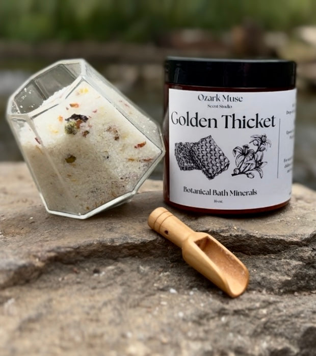 Golden Thicket combines comforting honey, chamomile and ylang ylang into a golden soak that sooths and wraps you in a soft, crisp and floral warmth that lingers like late afternoon light.